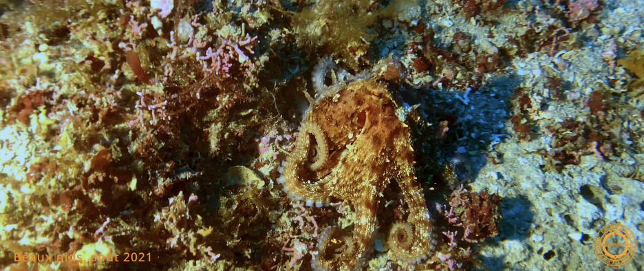 Une Pennatule se déplace, en se mettant en boule, portée par le flux. Sa voisine, l'étoile de mer, possède trois pattes de taille normale et trois autres plus petites, séquelles de la violence de la nature. À la base d'un petit relief, un Poulpe rouge à taches blanches se recroqueville à notre approche.
