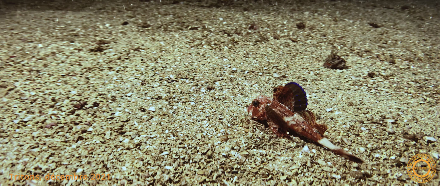 Nous survolons maintenant un espace sableux. Une Vive est aux aguets. Plus loin, une Raie torpille prend la fuite à notre approche. Elle ondule de la queue et nage maladroitement en se heurtant aux obstacles qui jonchent sa route. Elle est observée par des Mendoles. Un bébé Rouget grondin avance sur le sable en agitant frénétiquement ses petites pattes.