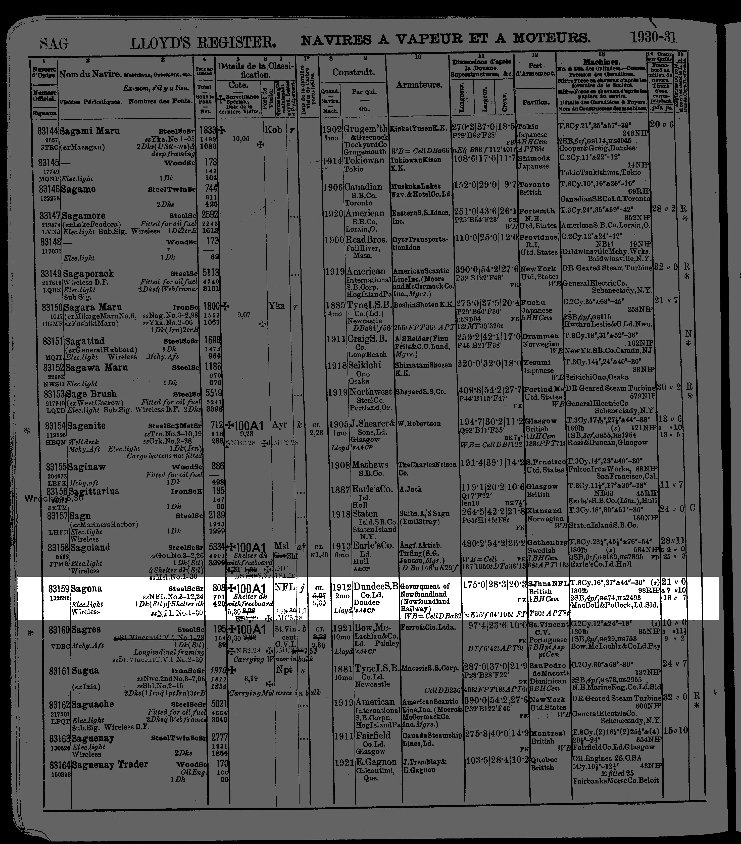 Construit en 1912 par les chantiers navals Dundee SB ltd, le Sagona était un petit cargo de 54 m de long et de 8,5 m de large jaugeant 808 tonnes. Il disposait d'une machine à vapeur de 98 ch. Sa vitesse de pointe était de 11 nœuds.