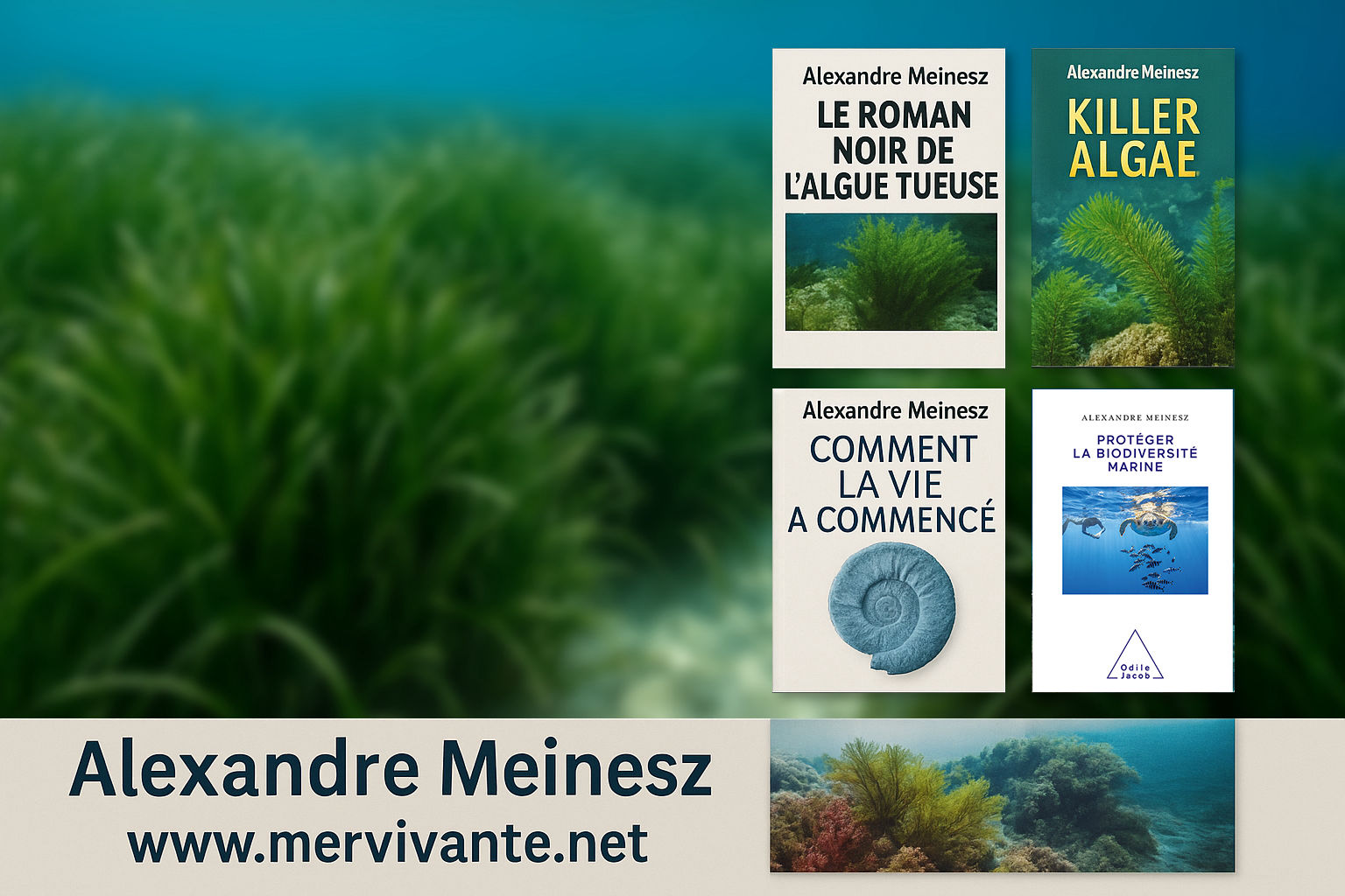 Alexandre Meinesz a marqué la recherche marine par ses ouvrages incontournables, à commencer par Le Roman noir de l’Algue Tueuse, un récit captivant publié en France chez Belin traduit en anglais (Killer Algae) puis en italien, qui raconte l’invasion spectaculaire d’une algue devenue légendaire.