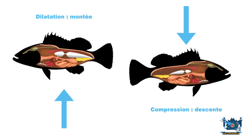 Si elle se remplit de gaz, le poisson devient plus léger et remonte ; si elle se vide, il devient plus dense et descend.
