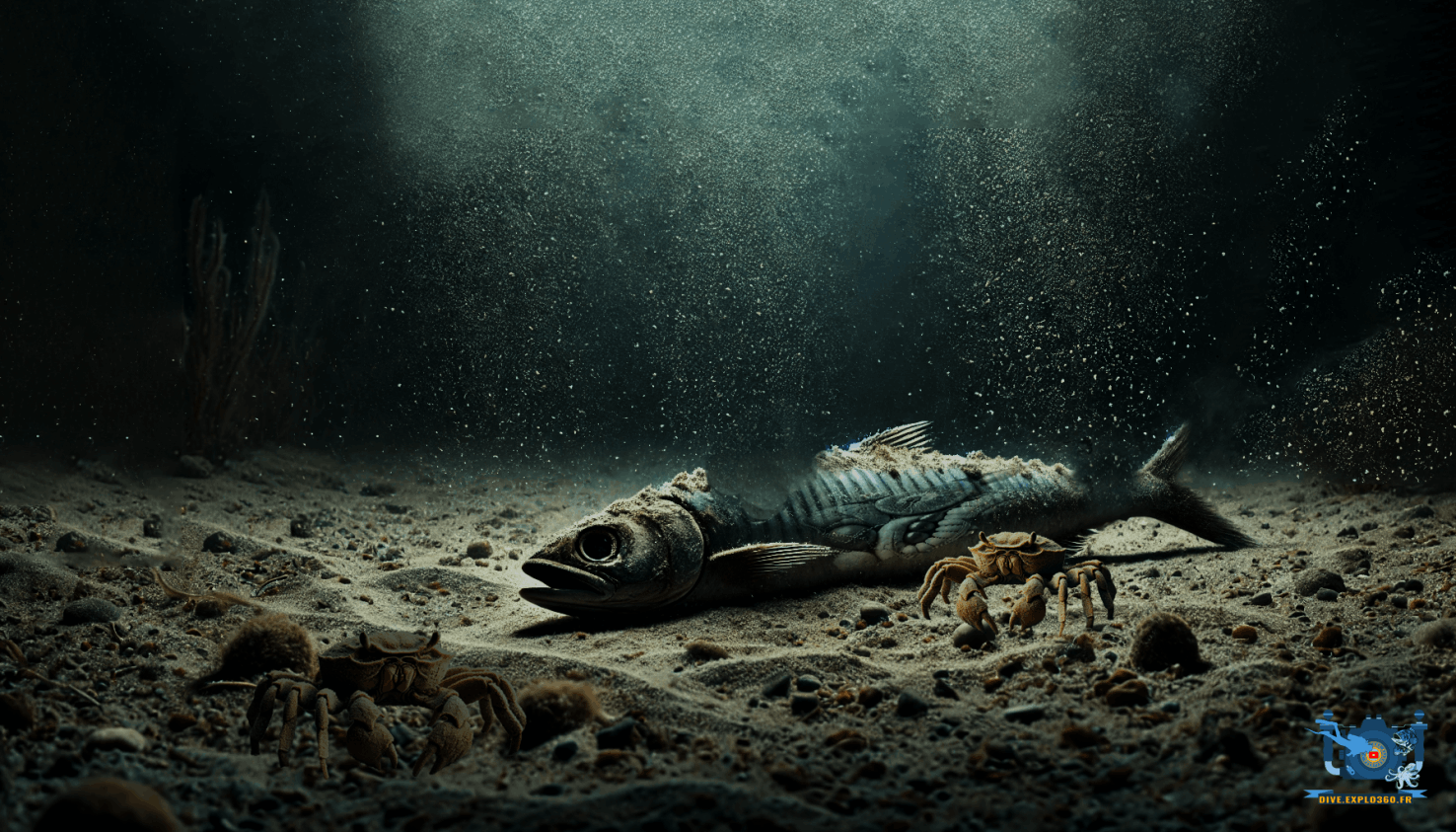 Lorsque les fragments de vie touchent le fond, le cycle entre dans sa dernière phase. Les crabes et autres holothuries, ces “aspirateurs marins”, filtrent le sable et recyclent les nutriments essentiels. Dans les grandes profondeurs, les carcasses sont décomposées par des bactéries marines, qui libèrent des éléments nutritifs dans l’eau.