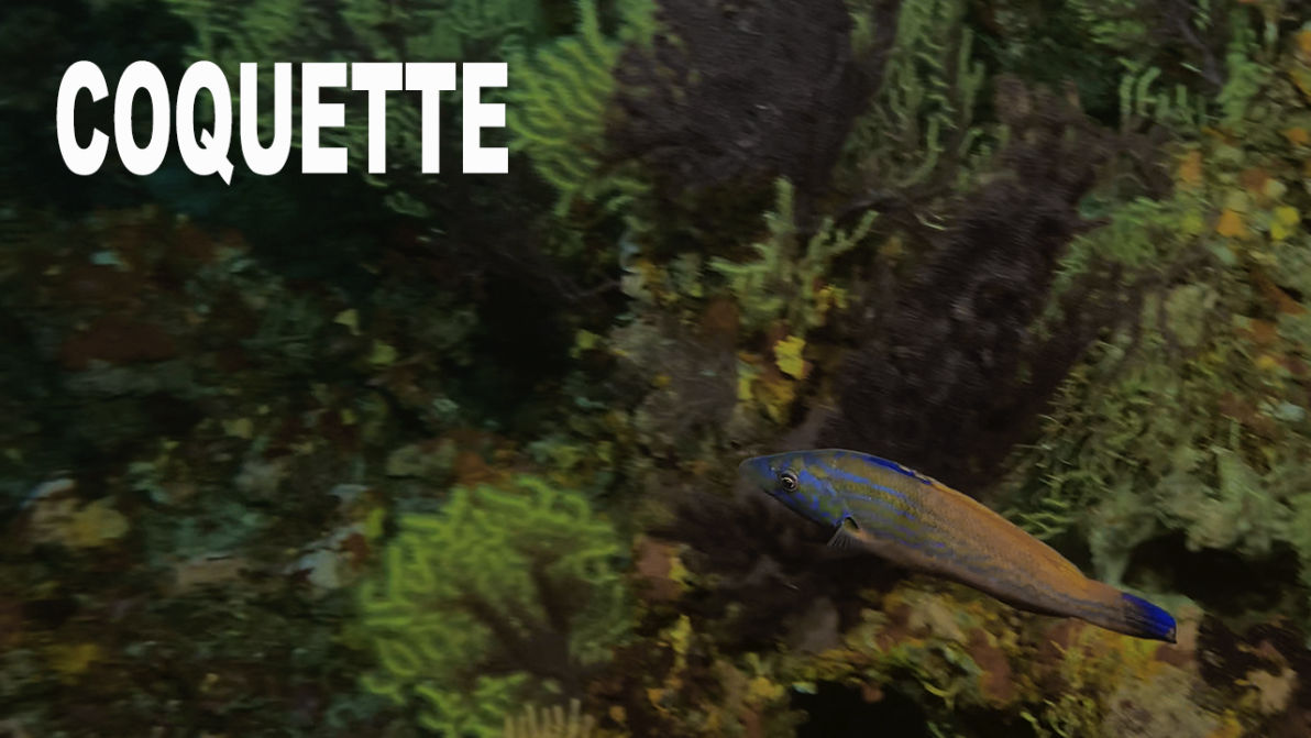 La Coquette se fait discrète lors de nos plongées, ne croisant que rarement notre chemin. Comme pour la plupart des poissons, il faut détourner le regard pour avoir la chance de l'observer de plus près.