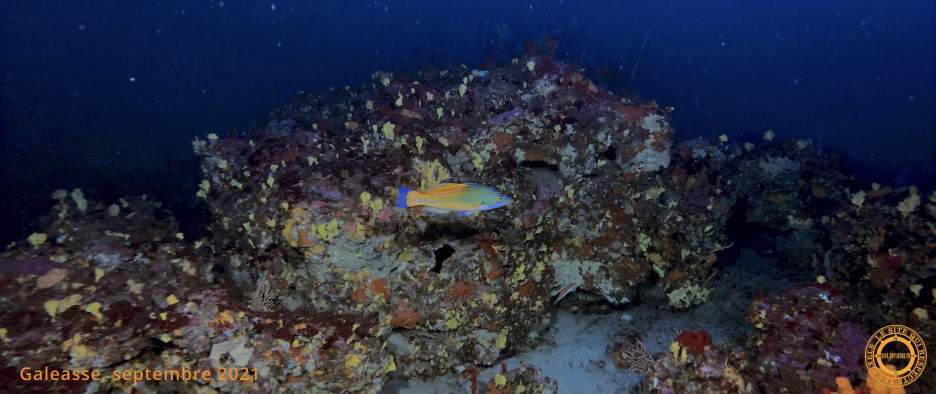 Dans une eau sombre, pour une journée de septembre, sur un fond de sable grossier, nous découvrons quelques roches qui s'étalent sur une surface importante. Très vivantes, nous assistons à un beau spectacle riche en couleurs et en vie, troublé par les chants lointains de quelques mammifères marins.