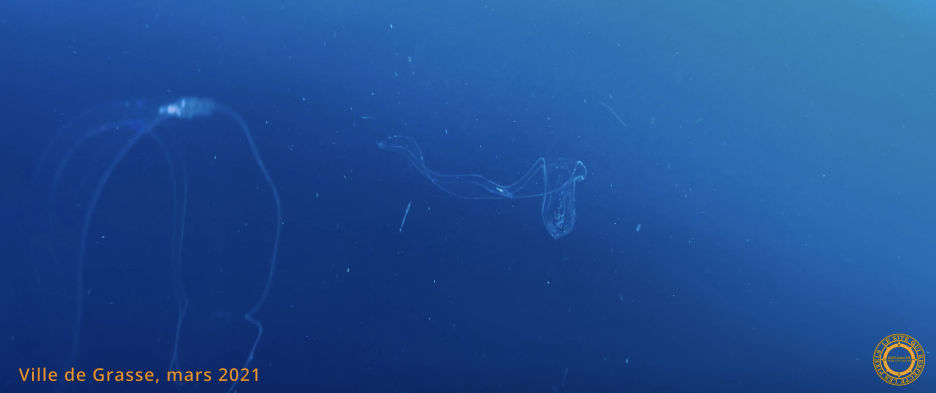 Au palier, suspendus à notre parachute, nous sommes entourés de Salpes. Vers la fin du dernier palier, nous assistons à un ballet de ceintures de Vénus. Nous sentons passer le plancton sur nos mains et sur notre visage. Une fois en surface, il nous faut remonter à l'échelle dans une mer bien formée.
