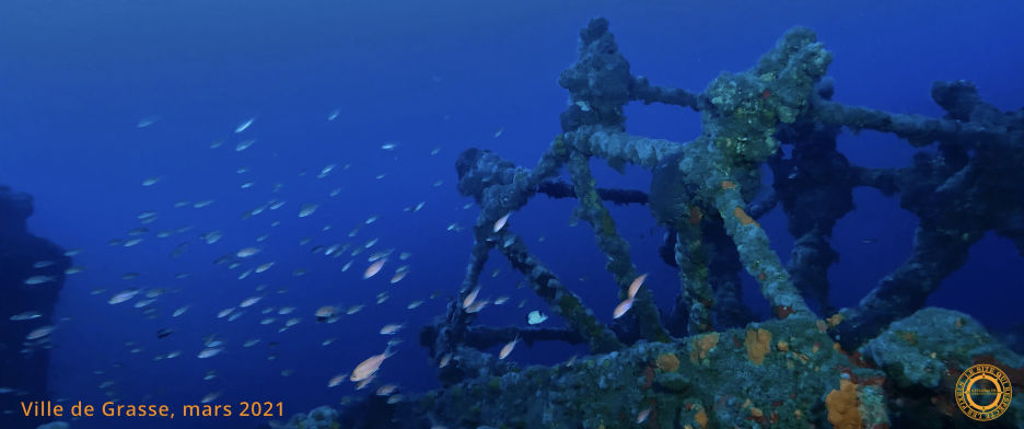 La mer est agitée. La seule plongée un peu plus à l'abri est le "Ville de Grasse". C'est bien, car nous ne l'avons pas encore sur le site Web. Dans ce type de mer, il ne faut surtout pas trainer en surface au risque d'être emporté par les vagues loin du site.