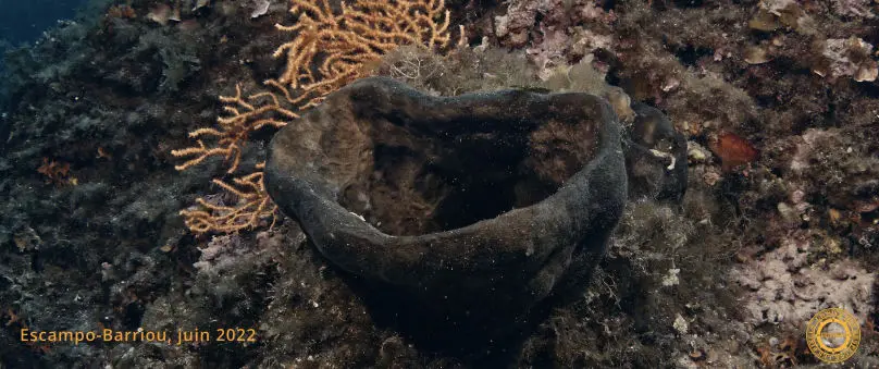 Un joli tombant prolongeant une falaise de 119 mètres, constellé d'anfractuosités, ou une faune et une flore sous-marine colorée trouve un habitat à sa mesure, telle est la pointe d'Escampo-barriou située au sud ouest de la presqu'île de Giens. A ses pieds un magnifique herbier de Posidonies.