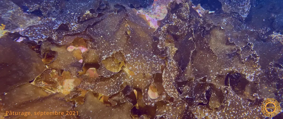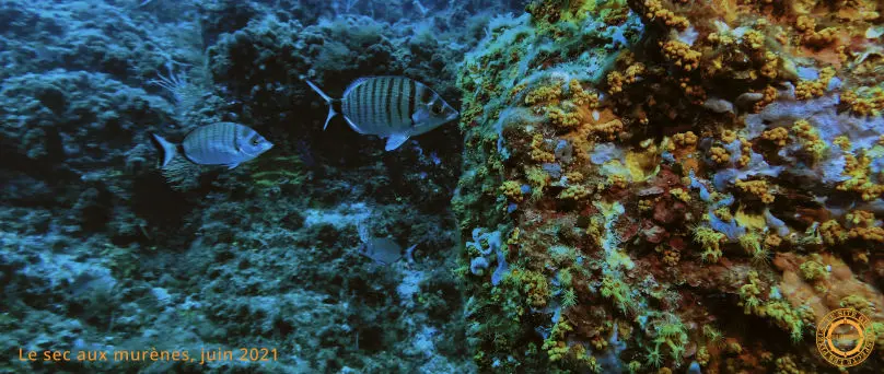 Quelques Étoiles de mer glaciaire ornent les parois verticales des superstructures. Les Gorgones pourpres sont accrochées sur le moindre espace libre. Un Doris géant est délicatement posé sur un lit d'algues vertes. Une Girelle curieuse vient nous voir de plus près cherchant à comprendre qui nous sommes.