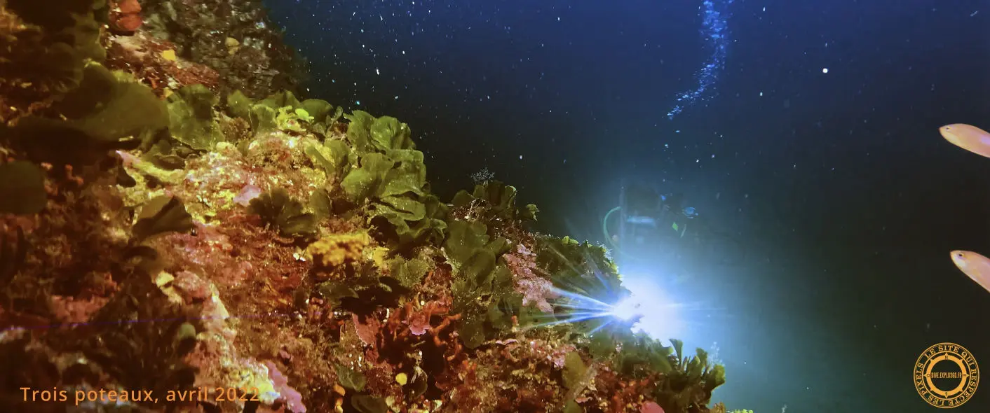 C'est un des grands classiques de la plongée autour des îles d'Hyères ! Les trois poteaux c'est un condensé des paysages sous-marins typiques de la Méditerranée. Roche, coralligène, herbier, sont ici réunis dans une seule plongée.
